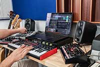 One of the standout features is the system’s built-in room calibration—a process that compensates for acoustic issues caused by room shape, speaker placement or reflective surfaces. Using IK Multimedia’s free X-MONITOR software and the included ARC measurement microphone, users can complete a calibration routine that adjusts the monitors’ output to suit their space. Once configured, listeners can switch between standard, desk and calibrated modes using a button on the back. No computer required.